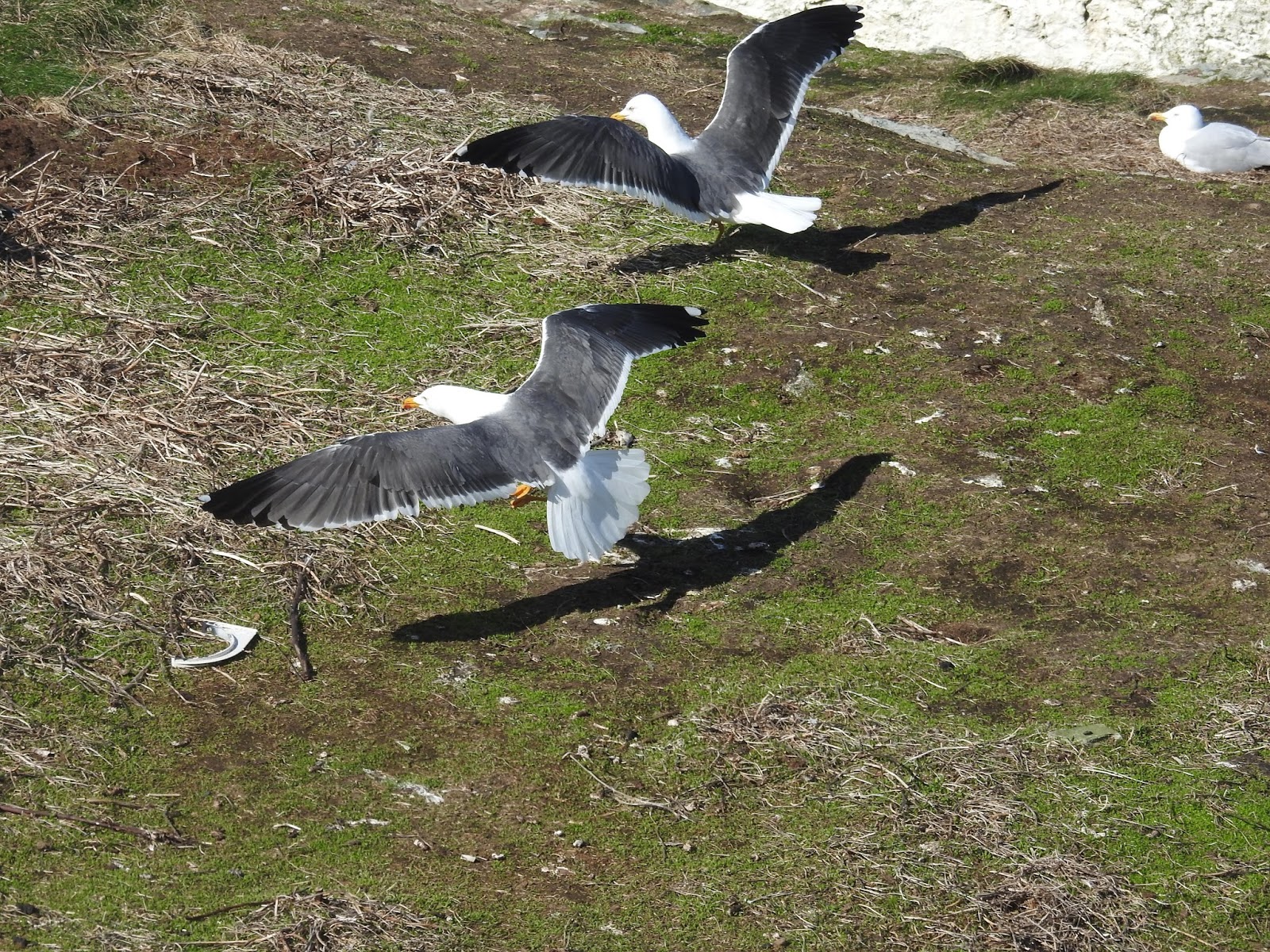 Herring gulls. The natural beauty of the area was even more amazing as we went up, though we couldn't get to the top of the mountains as we weren't outfitted for the snowy peaks. We then went back to the cottage, I was looking out of the window when, after looking for them for so long, a